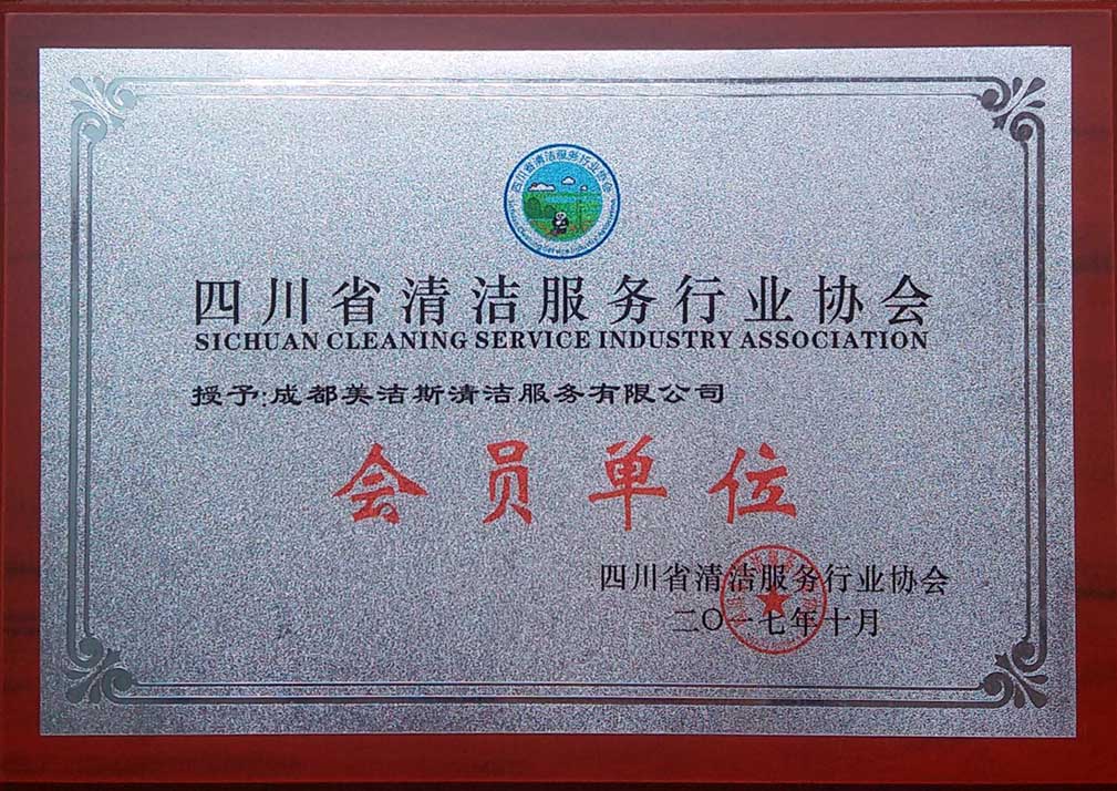 在這之前,公司已先繼成為成都市家政服務行業協會會員單位、理事單位。加入四川省清潔服務行業協會,是主管部門對公司努力再次給予的肯定,極大地鼓舞了我們的信心,因為這不僅將促進公司自身的發展和創新,為我們提供更多學習與交流的機會,還將提高企業競爭力,提升行業知名度,市場前景更加廣闊,將加大助力公司戰略的實施,標志著公司的發展邁上一個新臺階,是公司發展史上的又一個里程碑。