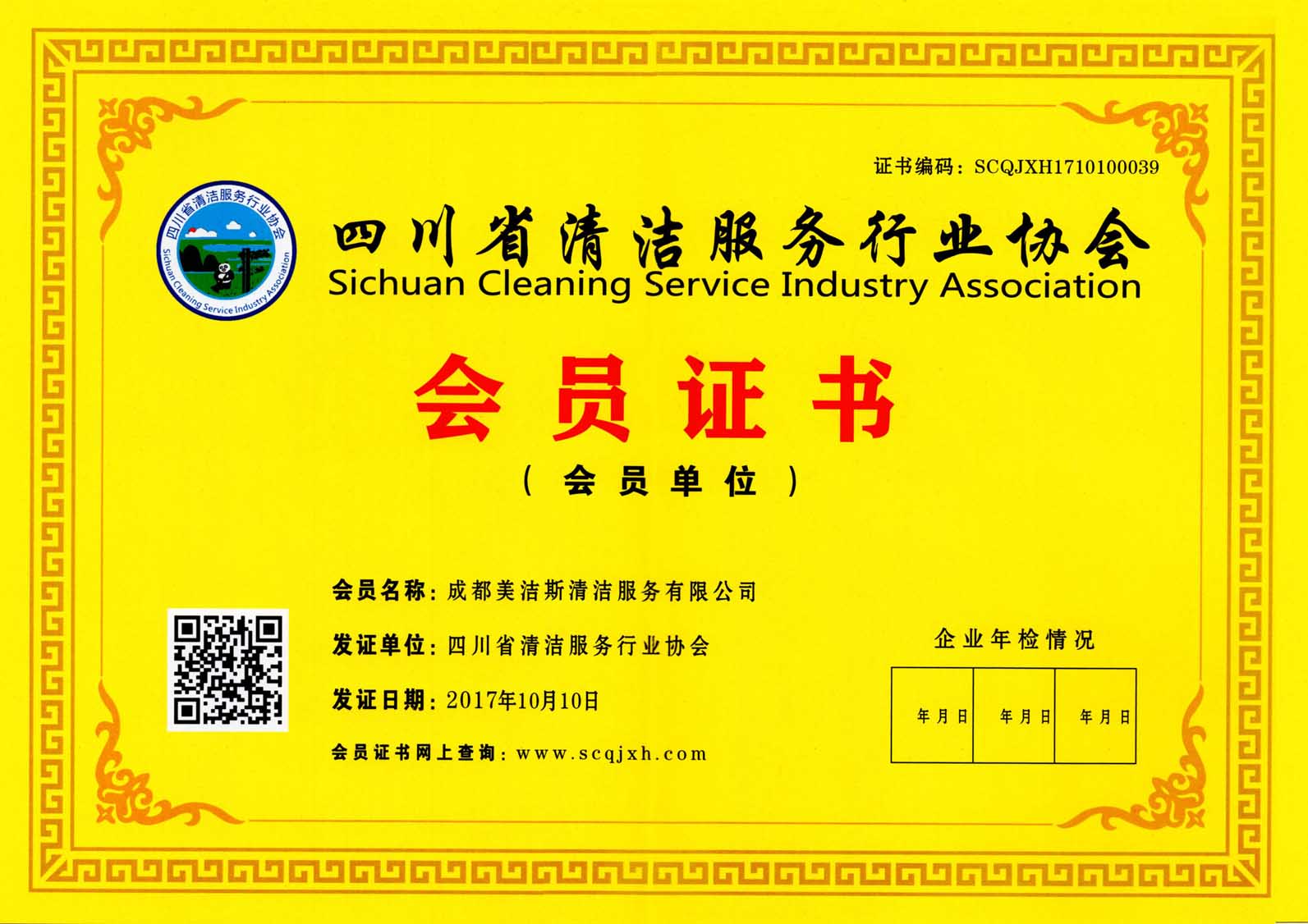 熱烈祝賀公司正式成為四川省清潔服務行業協會會員單位!